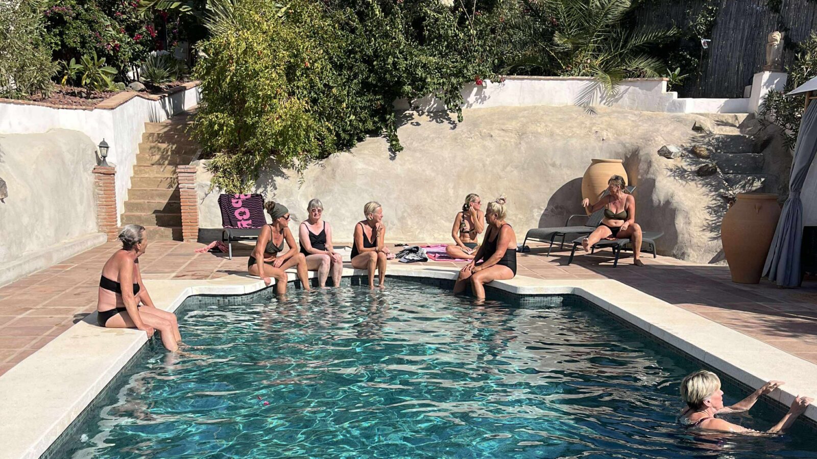 Dagarna fylls med yoga, vandringar i bergen, poolhäng och långa samtal i skuggan. Det finns gott om tid att vara för sig själv och gott om tillfällen att dela upplevelser med gruppen. Det här är ingen resa för den som söker puls och sena kvällar — det är en vecka av ren rekreation, där du får vila, röra på dig och landa i dig själv.